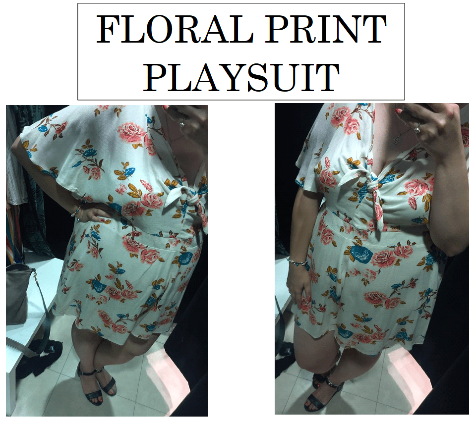 Okay, we’ve had a lot of thumbs down in this undercover shopper experience but I tried this on and my faith was restored. I am in love with this. I love playsuits, but I have to have soft cotton fabric ones with an elastic waist because otherwise they’re either gonna be too tight, not fit, and make me look like a whale trapped in a net. But I tried this on and I cannot get over how beautiful this is. When I tried this one on I was actually with my friend Tash and we both tried it on and loved it. She actually bought this she loved it that much. This is more crepe material so it’s a tad more textured but still extremely comfy and super flattering. You can see where that band is which brings in my waist and then goes out slightly underneath so my hips look nice and round. I love big blow out sleeves, especially belle sleeves. I just think they look so flattering on everyone and they’re much more freeing to wear. This pattern is gorgeous, I love this neckline, it shows a bit of cleavage but not too much. You know what, Primark you’re getting a clap for this one, well done. This has the perfect balance of classy but cute. This one was 100% true to size because it fit Tash perfectly as well and she is a couple of sizes smaller than me I think. I am 100% comfortable in this, I could go out in this at any point and I’d be happy and comfortable. I feel so good in this, this looks bomb on my figure to me. I think you could honestly wear this on any occasion. Out in the day time, a night out, an evening meal, even a wedding or a christening. Honestly I feel like this piece is so versatile. I would probably wear it casually and potentially as a night out outfit with some white sandals or slip on shoes. By far one of my favourite things out of the entire store that I tried on. Well done Primark.