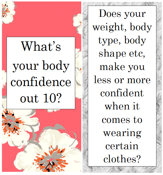 Firstly, what’s your body confidence out of 10? The answers I received create an average of 6/10 for generalised body confidence in the young women I asked.