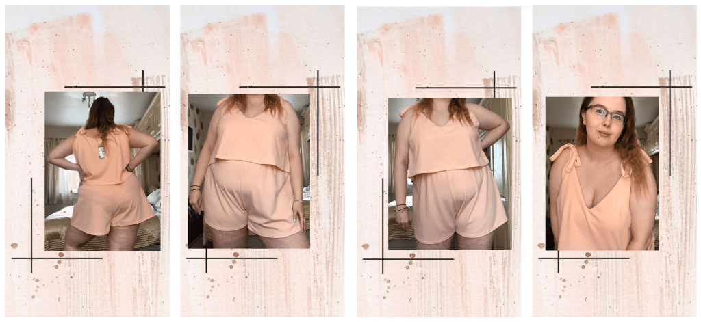 Again this had potential but the fit is all wrong. The top part of the material is overly loose and you cant adjust the straps so it kept falling down. The middle part where the top overlaps the trousers is meant to be flattering but I feel like on me it’s just not. The trousers around my hips and stomach was too tight and it was a bit restricting on my legs. So I’m gonna go a head and say that this wasn’t true to size, I don’t know what size 20 body they’re making this for honestly. Despite that I didn’t feel bad in this but I didn’t feel good in this. It was just a bit of weird piece but then again jumpsuits are always a struggle for my body type and you’ll see that throughout this series. But if I were to style it as it’s an all in one the work is pretty much done for you. I’d probably just pair it with a jacket of some kind and some sandals. You’d could probably wear this casually in the day or on an evening out or night out etc. But overall, thumbs down.