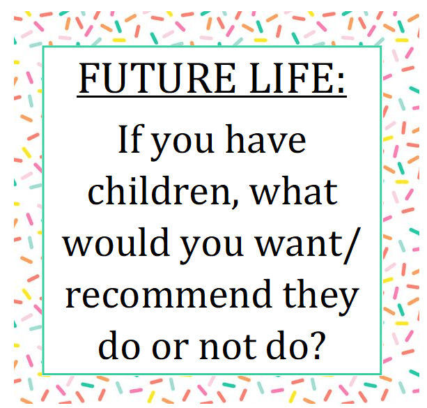 Oooo things are getting interesting! I really liked this question as it was so different to any of the others. I feel like this is so hard as I feel like you don’t know what kind of parent you’re gonna be until it happens. One thing I would never want is for them to feel like I’m telling them what to do with their life. I think sometimes parents add in their opinion when it’s not always needed. Especially when you’re a teenager, I think parents think telling their kids what they should be doing by a certain age is how it’s meant to go. I imagine for our generation when we have children it’ll be quite different to how our parents raised us. I would want them to just be whoever they wanted to be and do whatever they wanted to do. Of course within reason, like I don’t want them to turn out to be a murderer or anything. But I just wouldn’t want them to feel pressure or feel like they couldn’t talk to me if the needed to or if they genuinely wanted my advice etc. The only thing I would want them to be is kind to other people, respectable, caring, nice, and just not unnecessarily mean, or nasty, or horrible etc. It’s never a nice feeling to find out that your child isn’t being as good of a person towards other people that they can be. I imagine anyway as I am not a parent. *Sipping that gin.*