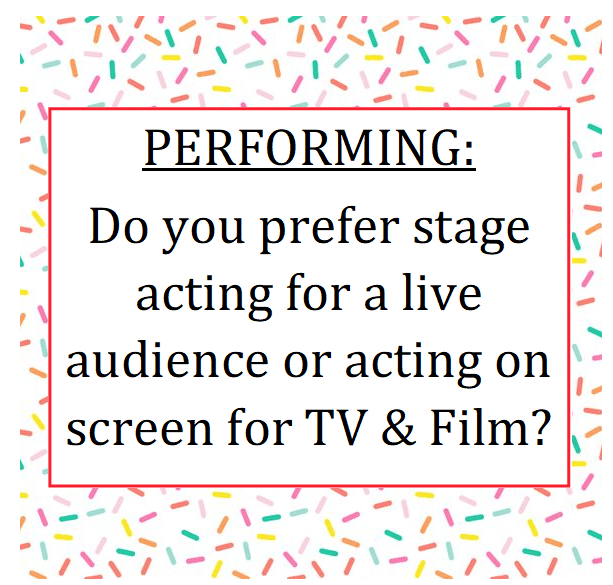 This is a very interesting question so I had to include it. I’ve actually never been asked this so exclusive! I haven’t actually done any proper screen acting and I would love to experience it at some point in my life. But if you know me well and have seen me perform I would have to say stage. Like not to toot my own horn or anything but the way I perform and my personality and energy is made for the stage and the theatre. Plus performing on stage is so much fun and you get to know people in such a close-nit way that you become like another family. It’s just such a buzz and I really do miss it! Defo need to get back into stage stuff after all this corona business is done.